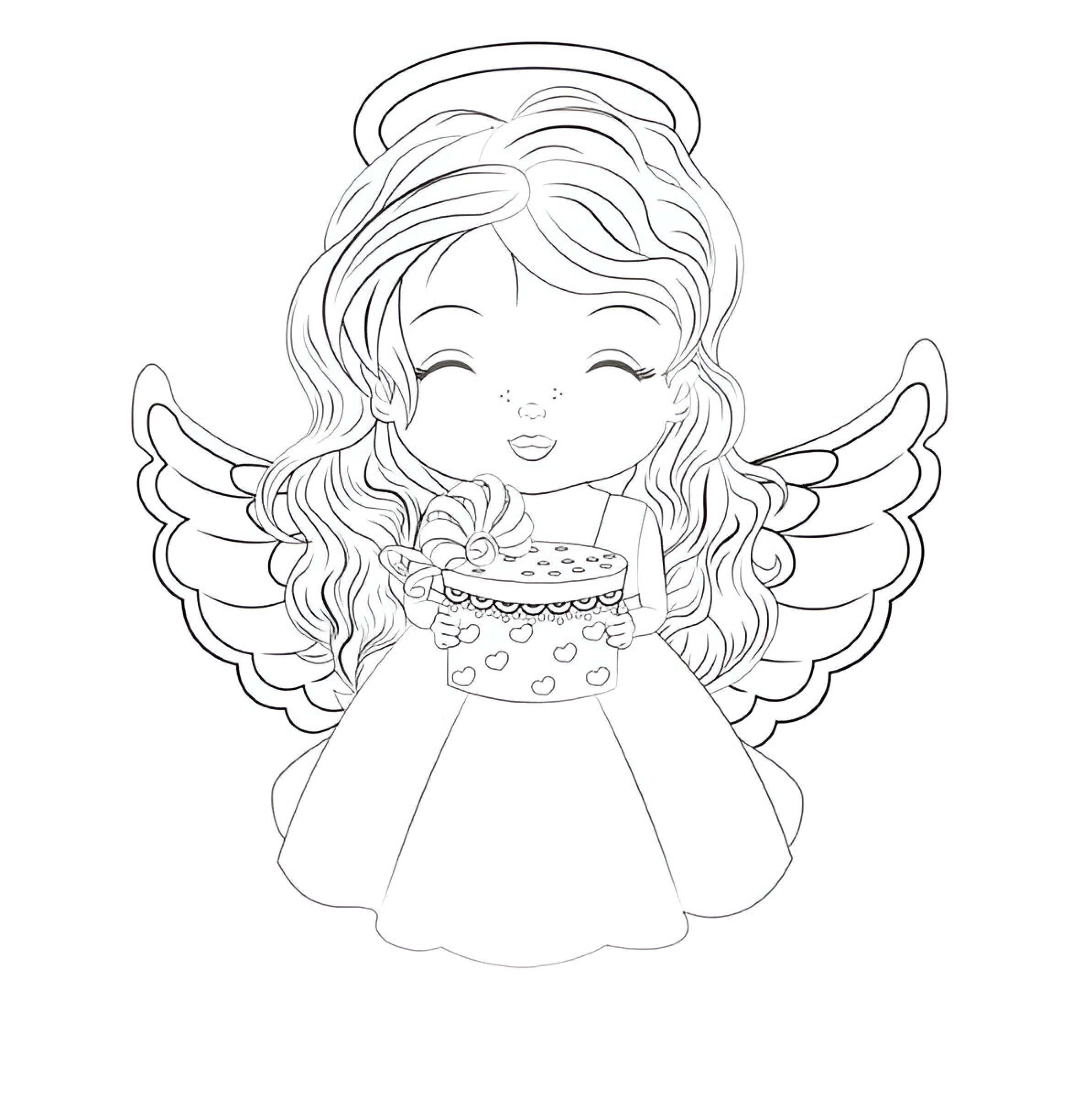 Este hermoso dibujo de un ángel con un regalo es perfecto para colorear y disfrutar en estas fiestas navideñas. Ideal para los pequeños que quieren mantener viva la tradición navideña mientras desarrollan su creatividad. Los detalles del regalo y el ángel simbolizan la generosidad y la alegría de compartir durante esta época tan especial.