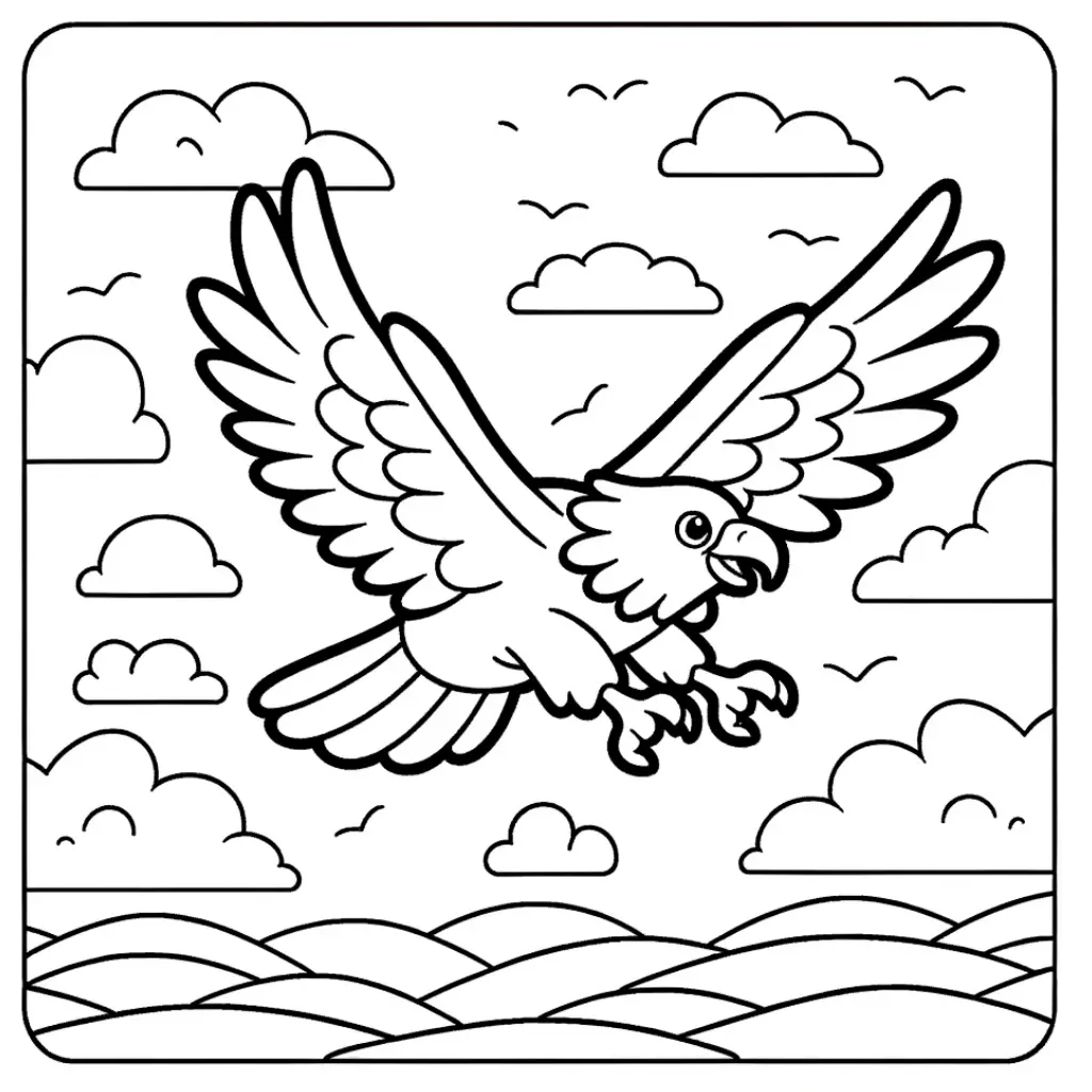 Este sencillo y encantador dibujo de un águila volando es perfecto para niños y principiantes. Facilita el aprendizaje y la diversión al mismo tiempo, permitiendo a los pequeños explorar el mundo de las aves mientras desarrollan su creatividad.