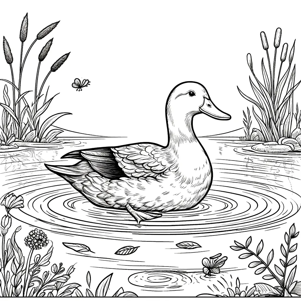 Este dibujo detallado de un pato en el estanque es ideal para colorear y disfrutar del arte. Llénalo de colores vivos.