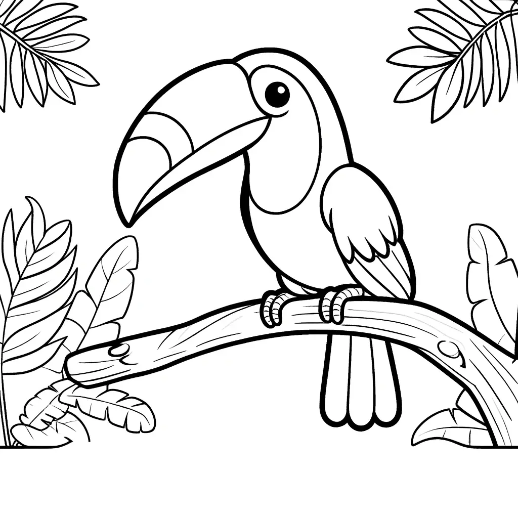Disfruta coloreando este lindo dibujo de un tucán posado en una rama. Perfecto para los más pequeños y para los amantes de los tucanes.