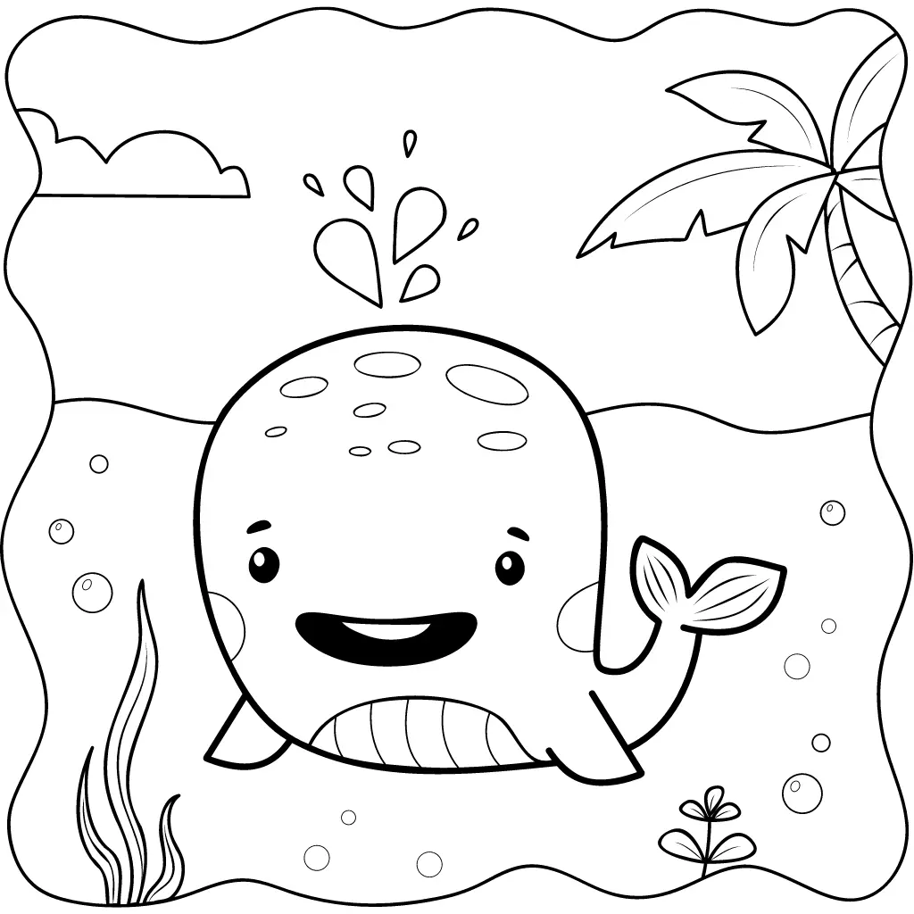 Este dibujo fácil de una ballena en el océano es perfecto para que los niños se diviertan coloreando. Simple y educativo, ideal para aprender sobre la vida marina.