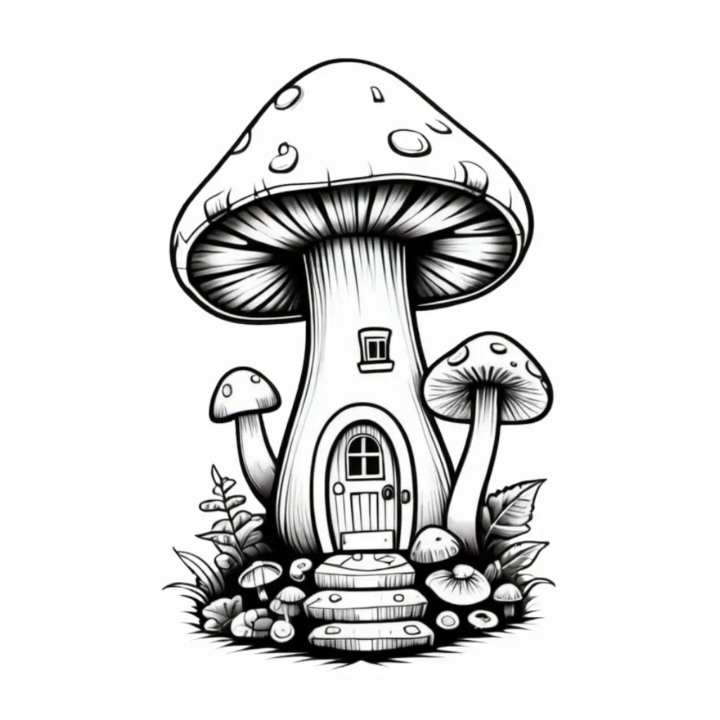 Sumérgete en el mundo de fantasía con este dibujo de una casa hongo. Perfecto para pintar y dejar volar tu imaginación.