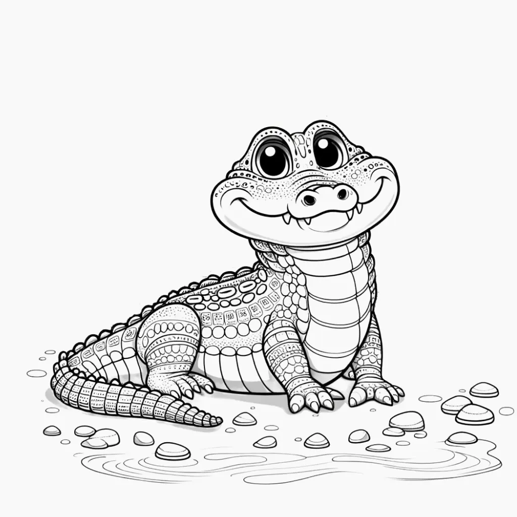Este dibujo de un cocodrilo feliz es perfecto para que los niños coloreen y se diviertan. Una imagen alegre que inspira creatividad y aprendizaje.