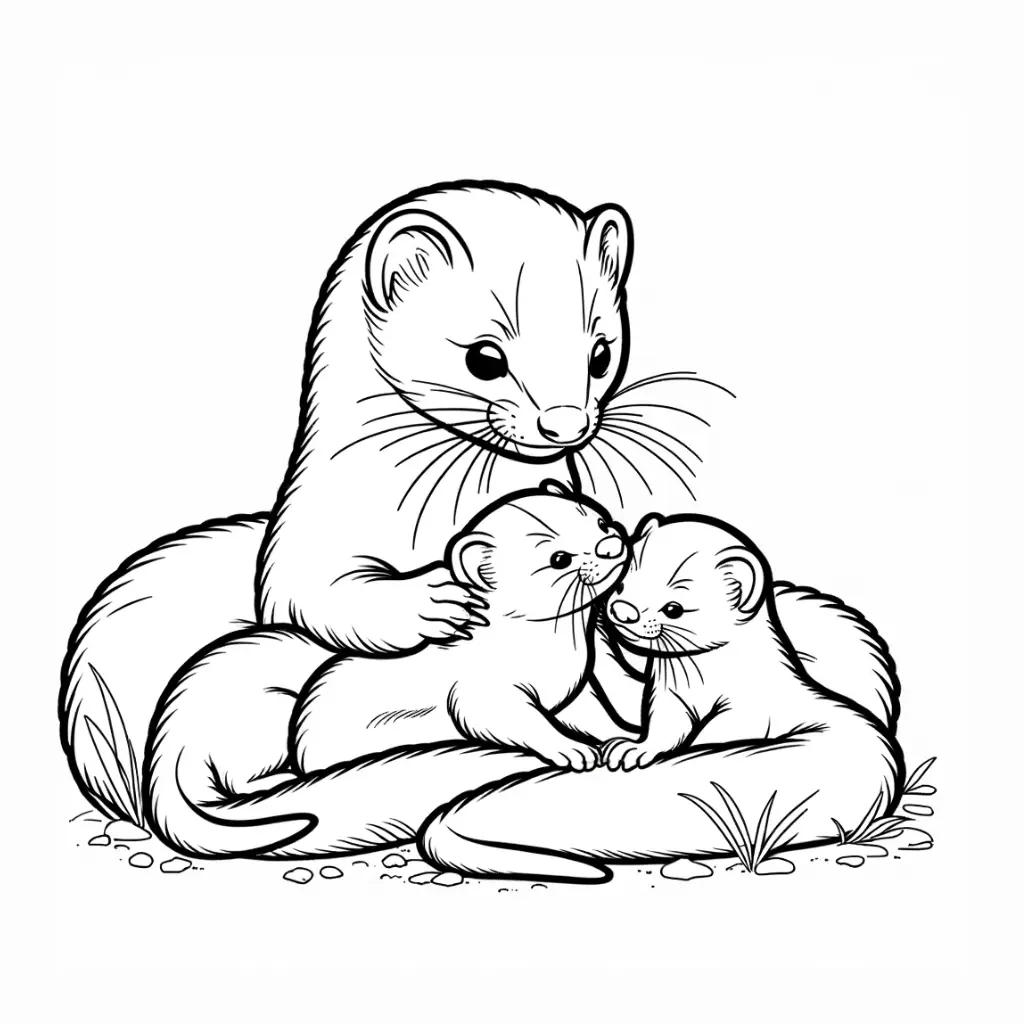 Pinta este adorable dibujo de una comadreja con sus crías. Una escena tierna que captura la belleza de la vida animal.