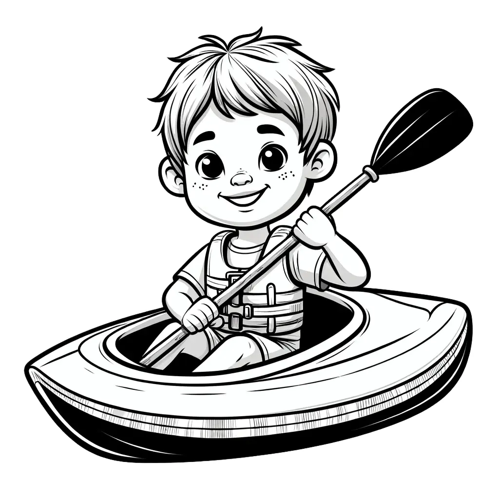 Colorea este emocionante dibujo de niños practicando kayak, ideal para fomentar el amor por los deportes acuáticos en los más pequeños.