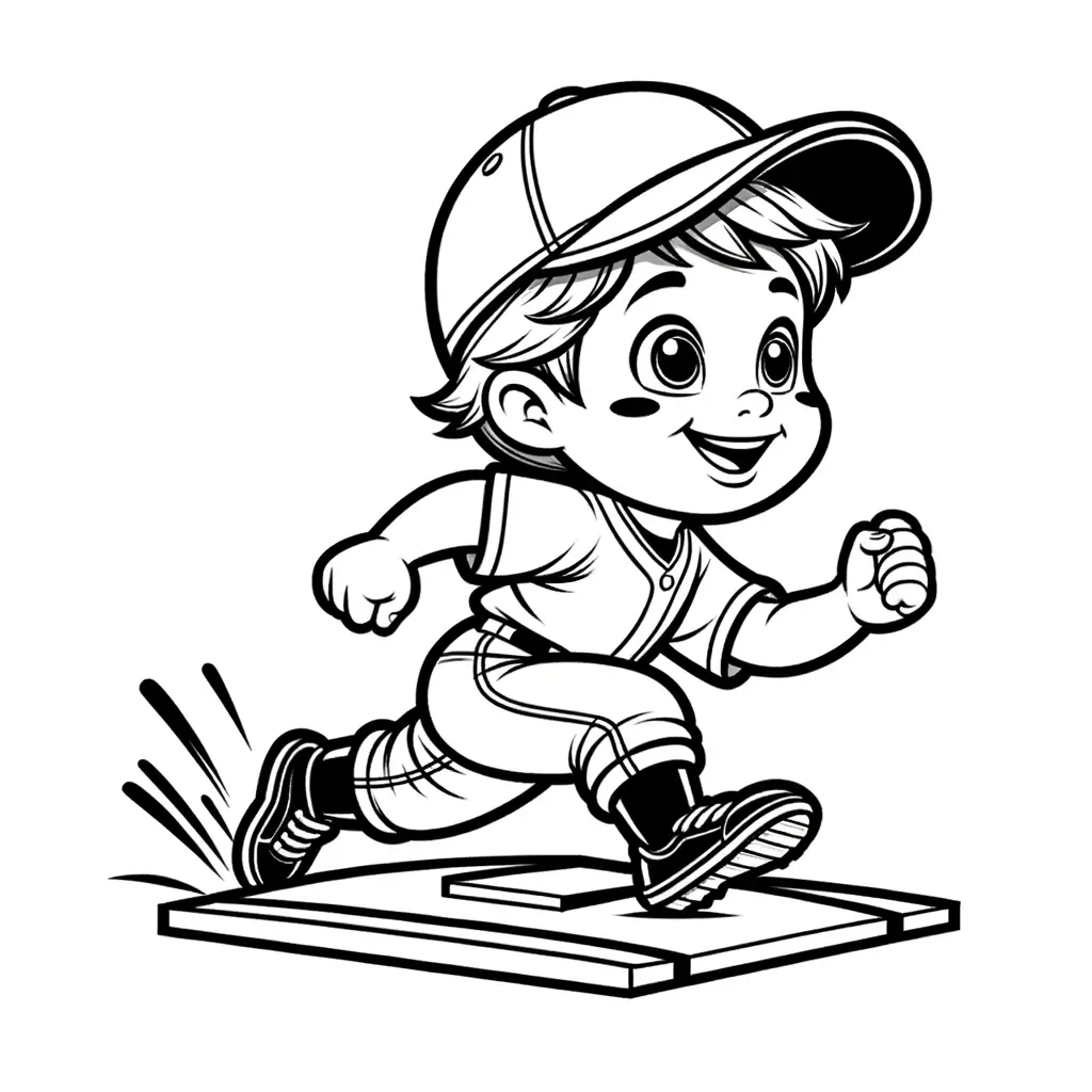 Imagen para colorear de un niño corriendo las bases en un juego de béisbol.