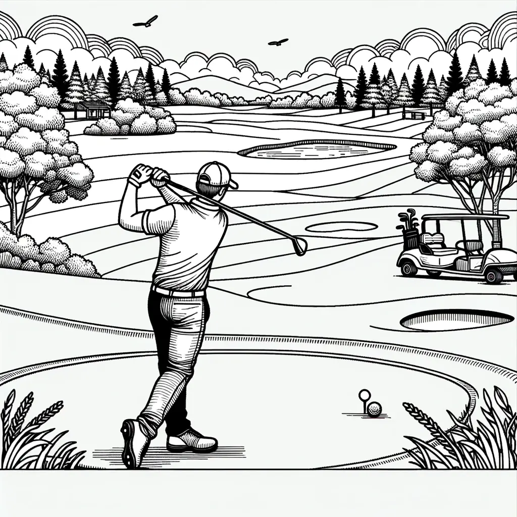 Imagen para colorear de un golfista jugando en un campo de golf.