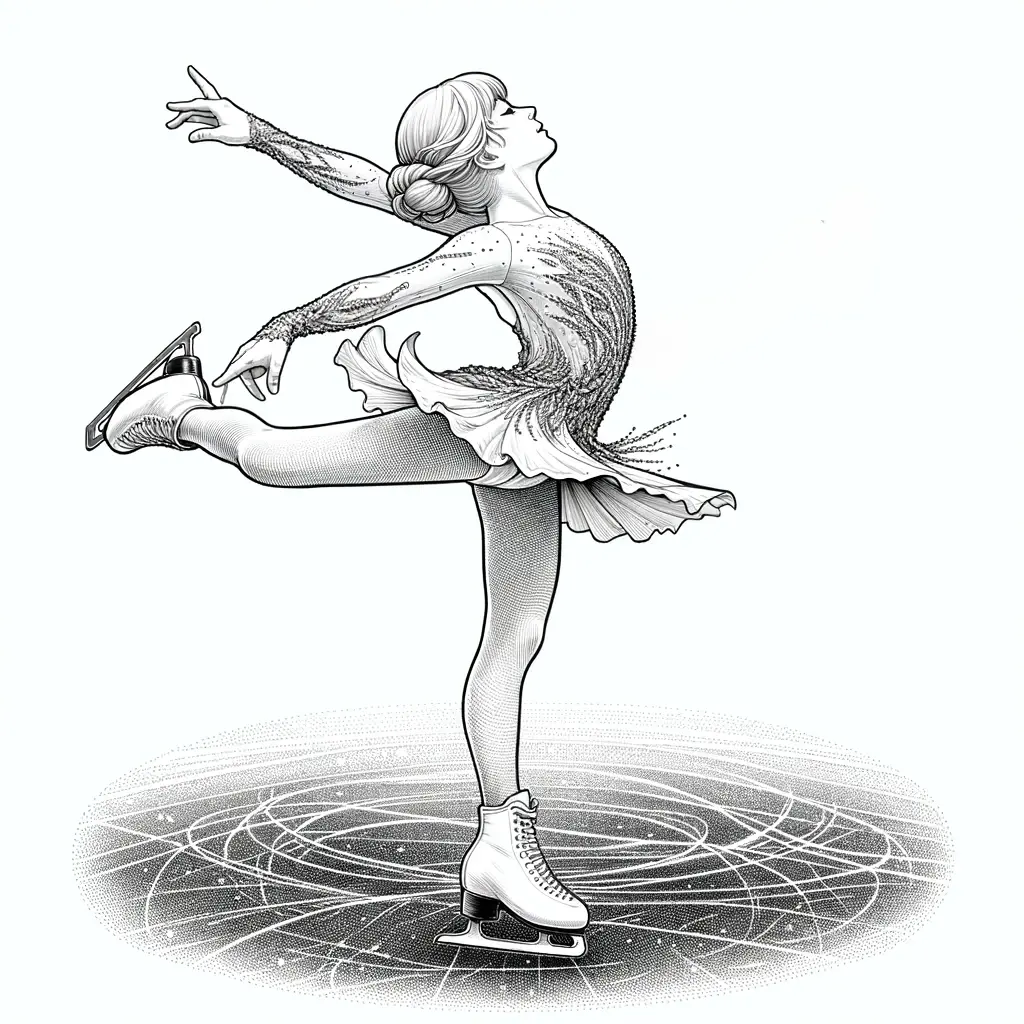 Imagen para colorear de una patinadora artística ejecutando una figura en el hielo.