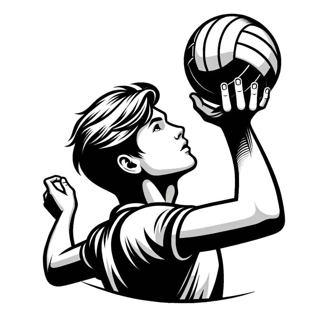 Imagen para colorear de un adolescente realizando un remate en voleibol durante el juego.
