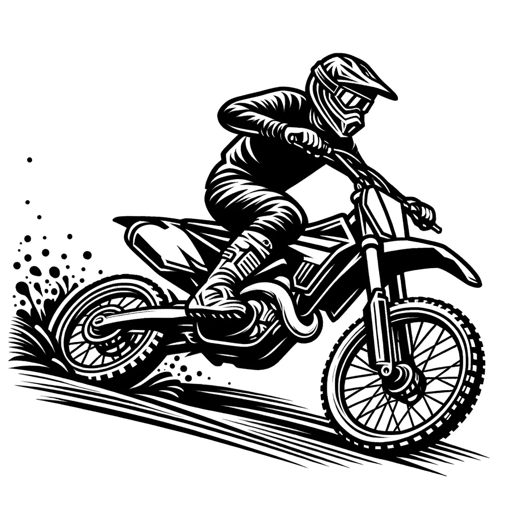 Dibujo para colorear de una competencia de motocross con pilotos en acción en la pista.