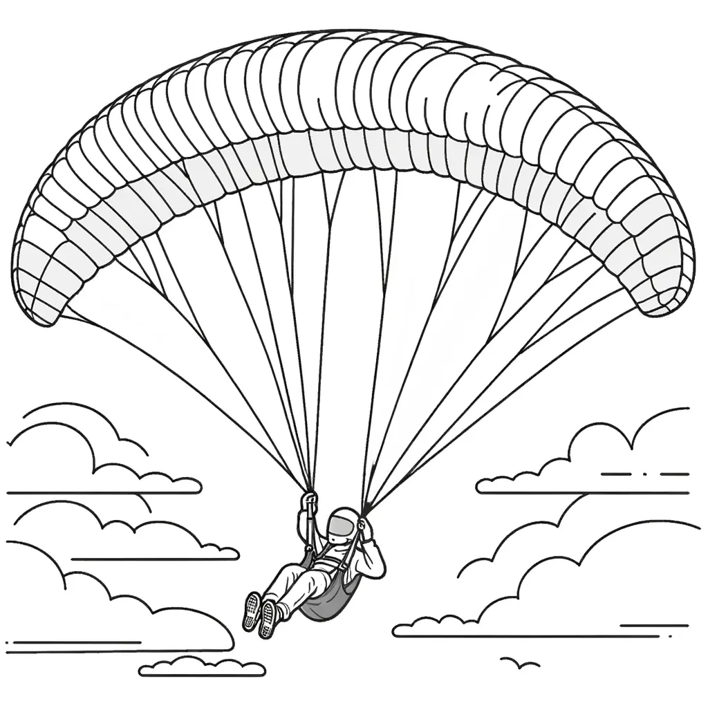 Imagen para colorear de una persona practicando parapente de forma sencilla y segura.