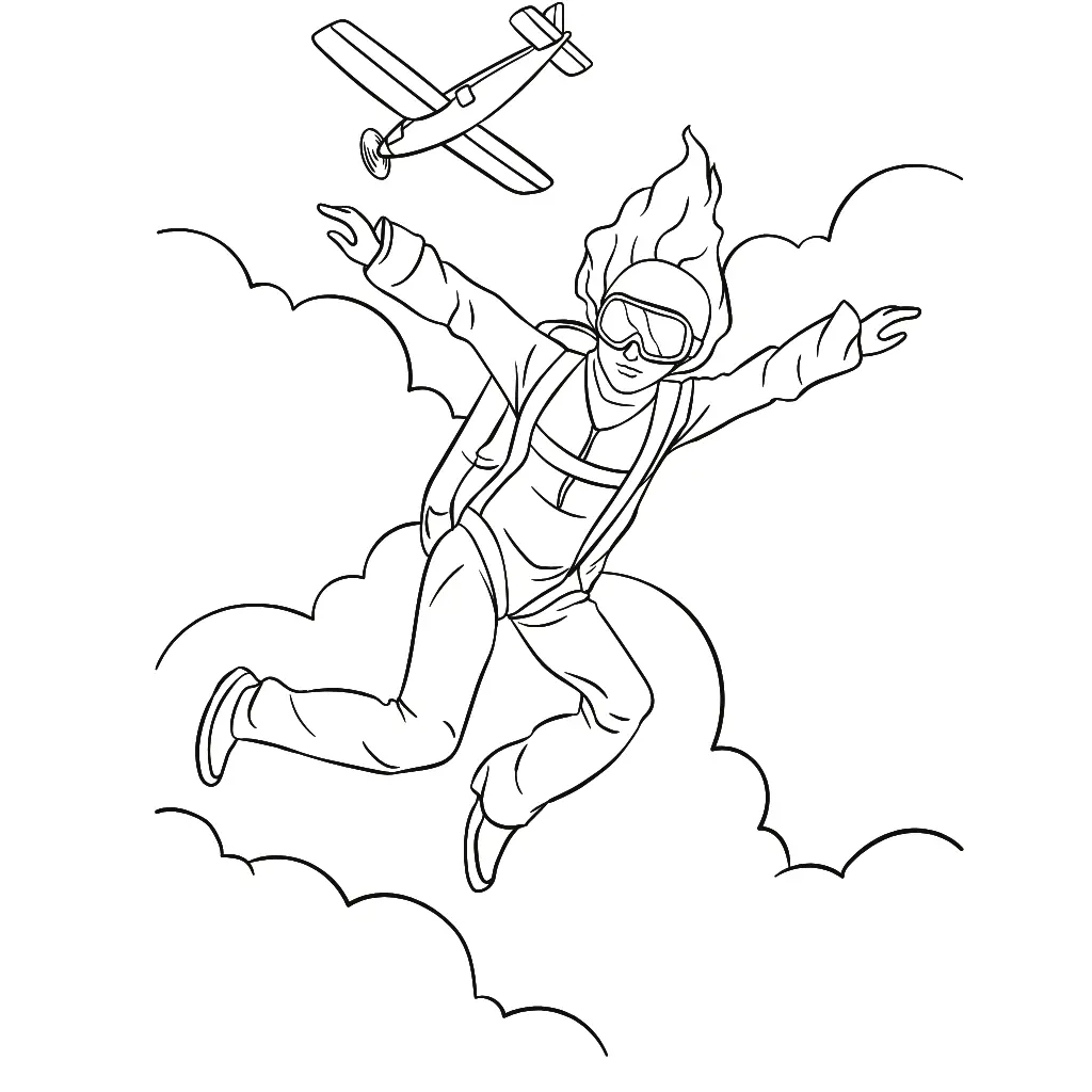 Dibujo para colorear de una persona realizando un salto en paracaídas de manera accesible y emocionante.