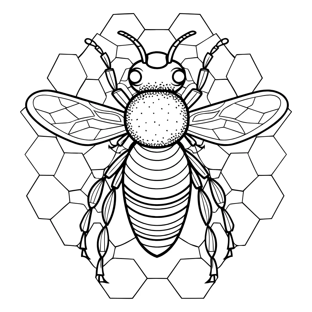 Un dibujo de una abeja junto a su panal, una imagen perfecta para colorear y aprender sobre la vida de las abejas.