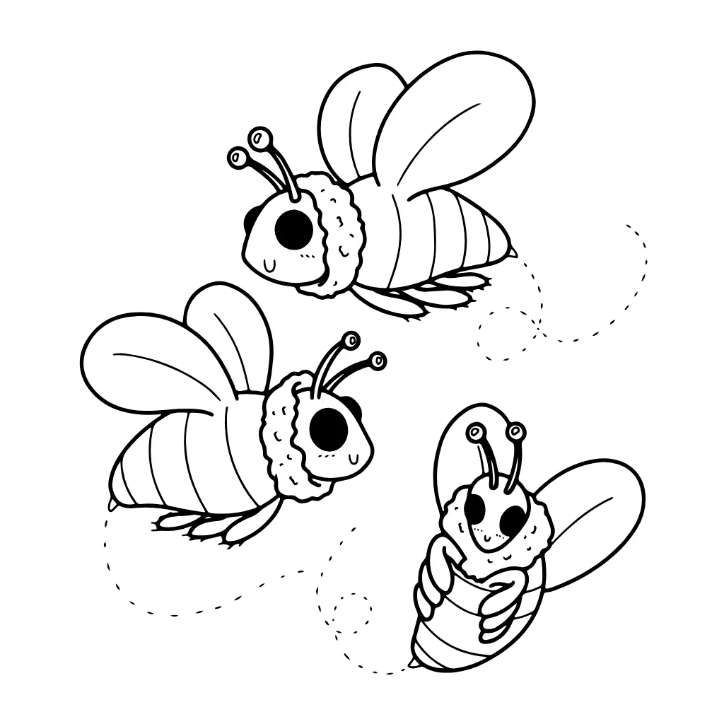 Un dibujo de una abeja kawaii, simple y fácil de colorear, perfecto para los amantes de este estilo adorable.