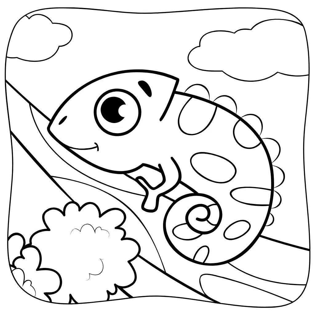 Dibujo de Camaleón Tierno en una Rama para Colorear Fácil