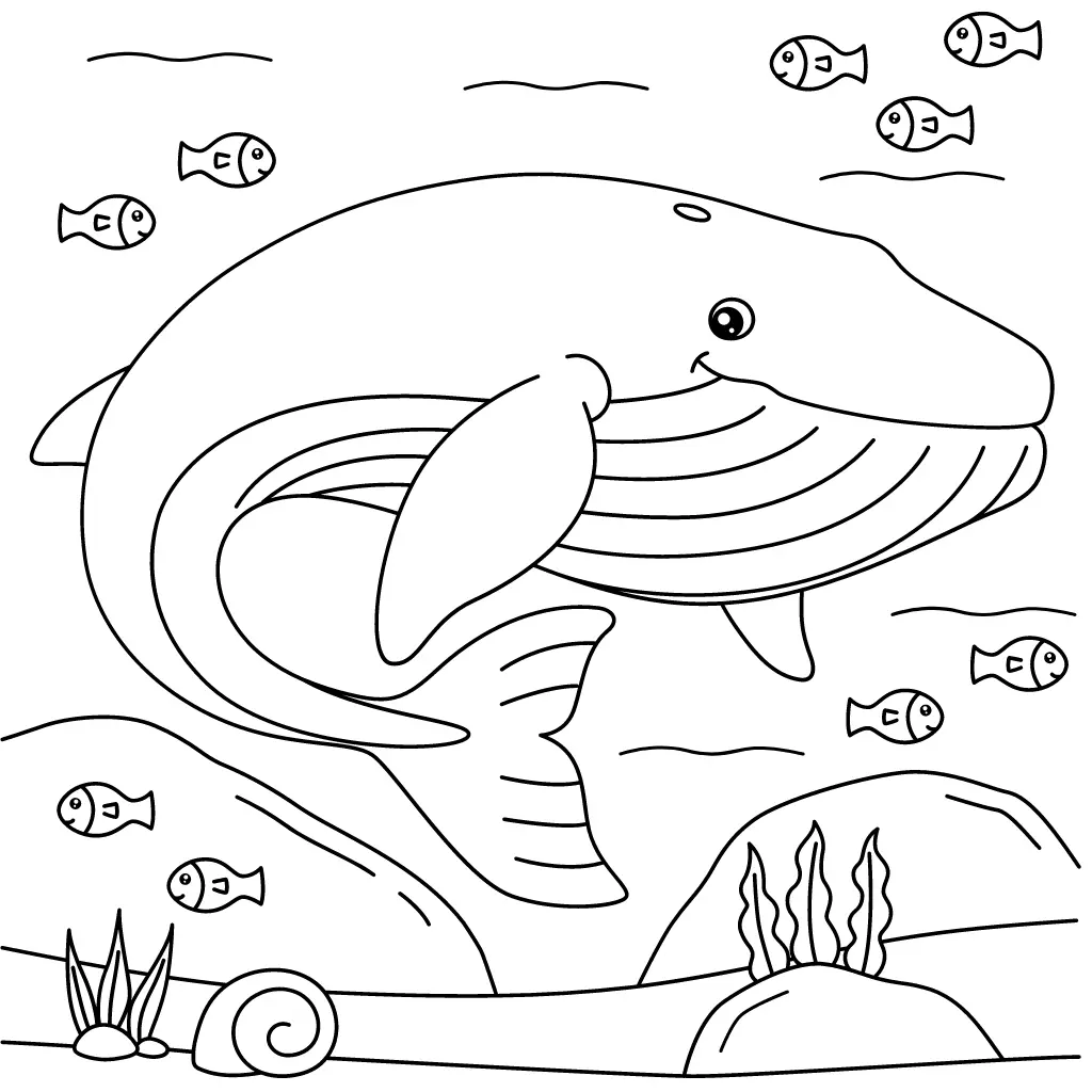 Este dibujo fácil de una ballena con un fondo de océano es perfecto para niños y adultos. Relájate y disfruta coloreando este hermoso diseño marino.