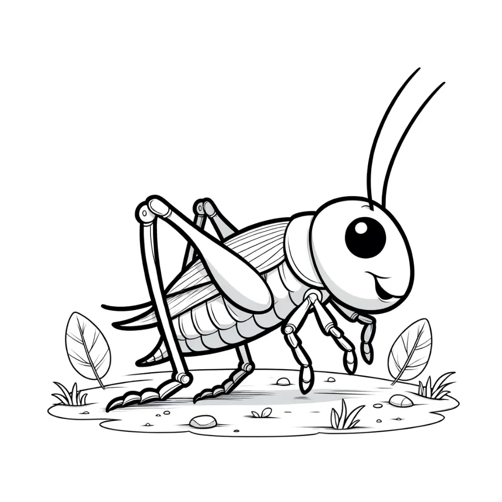 Disfruta coloreando este dibujo de un grillo en el campo, capturando la esencia de la naturaleza. Ideal para niños y aficionados al aire libre.