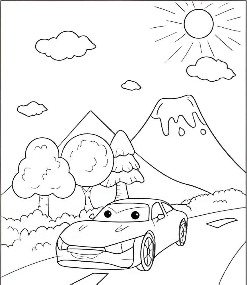 Lleva a los niños en una aventura a la montaña con este divertido dibujo de un coche animado. Colorear este paisaje lleno de montañas y naturaleza es una manera divertida de dejar volar la imaginación. Ideal para niños, este coche les hará soñar con grandes aventuras al aire libre. ¡Disfruta pintando!