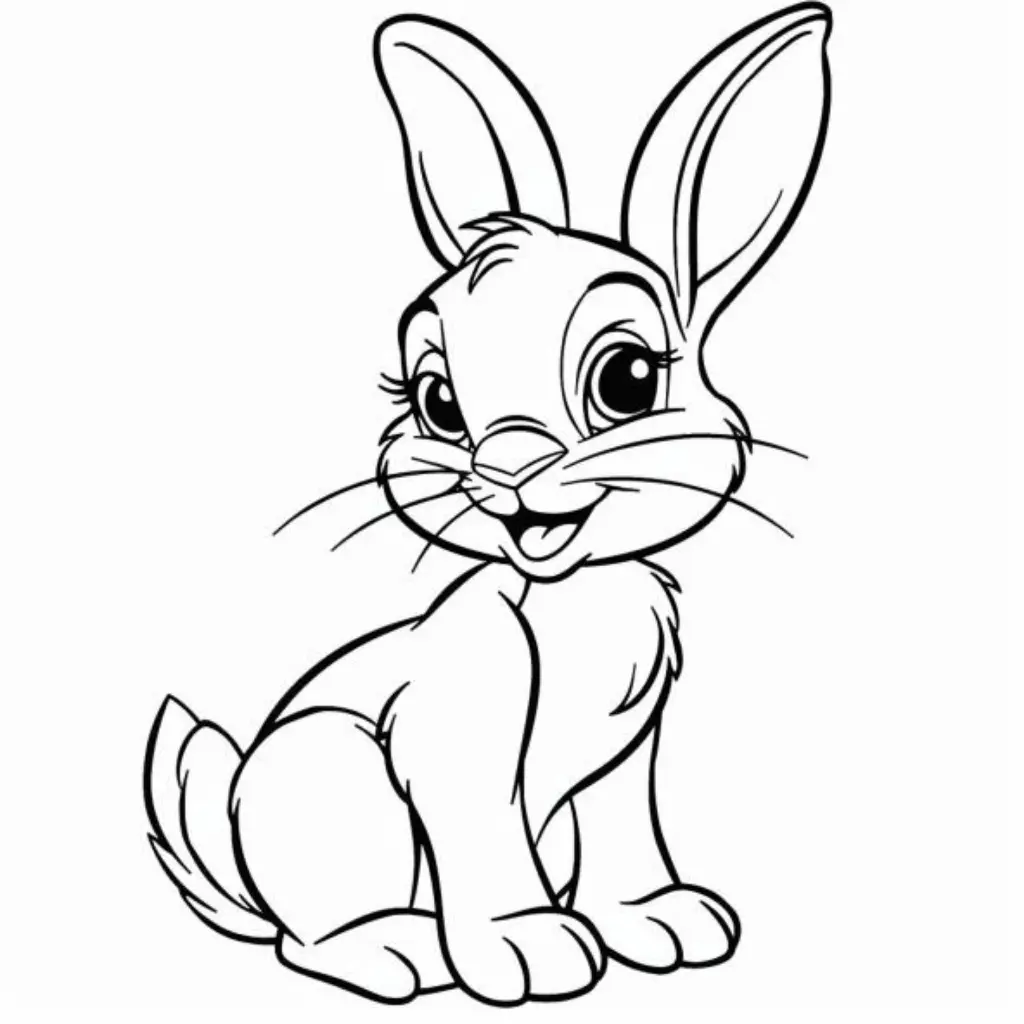 Disfruta coloreando este encantador dibujo de un conejo sonriente. Perfecto para los amantes de los animales y para momentos de creatividad y diversión.