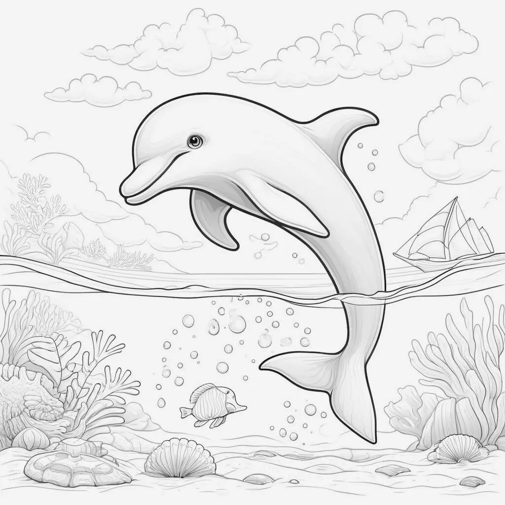 Un hermoso dibujo para colorear de un delfín saltando en el océano. Perfecto para quienes disfrutan de la vida marina y buscan un reto artístico.