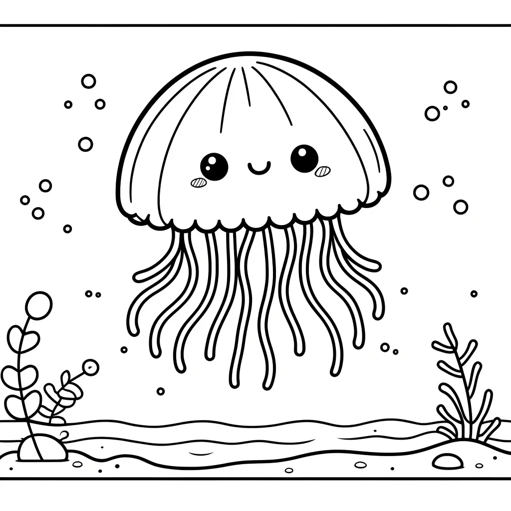 Este dibujo fácil de una medusa flotando es perfecto para colorear y relajarse. Ideal para niños y adultos que disfrutan de la vida marina.
