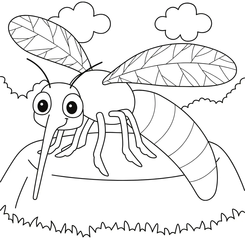 Diviértete coloreando este sencillo dibujo de mosquito, ideal para actividades educativas para niños.
