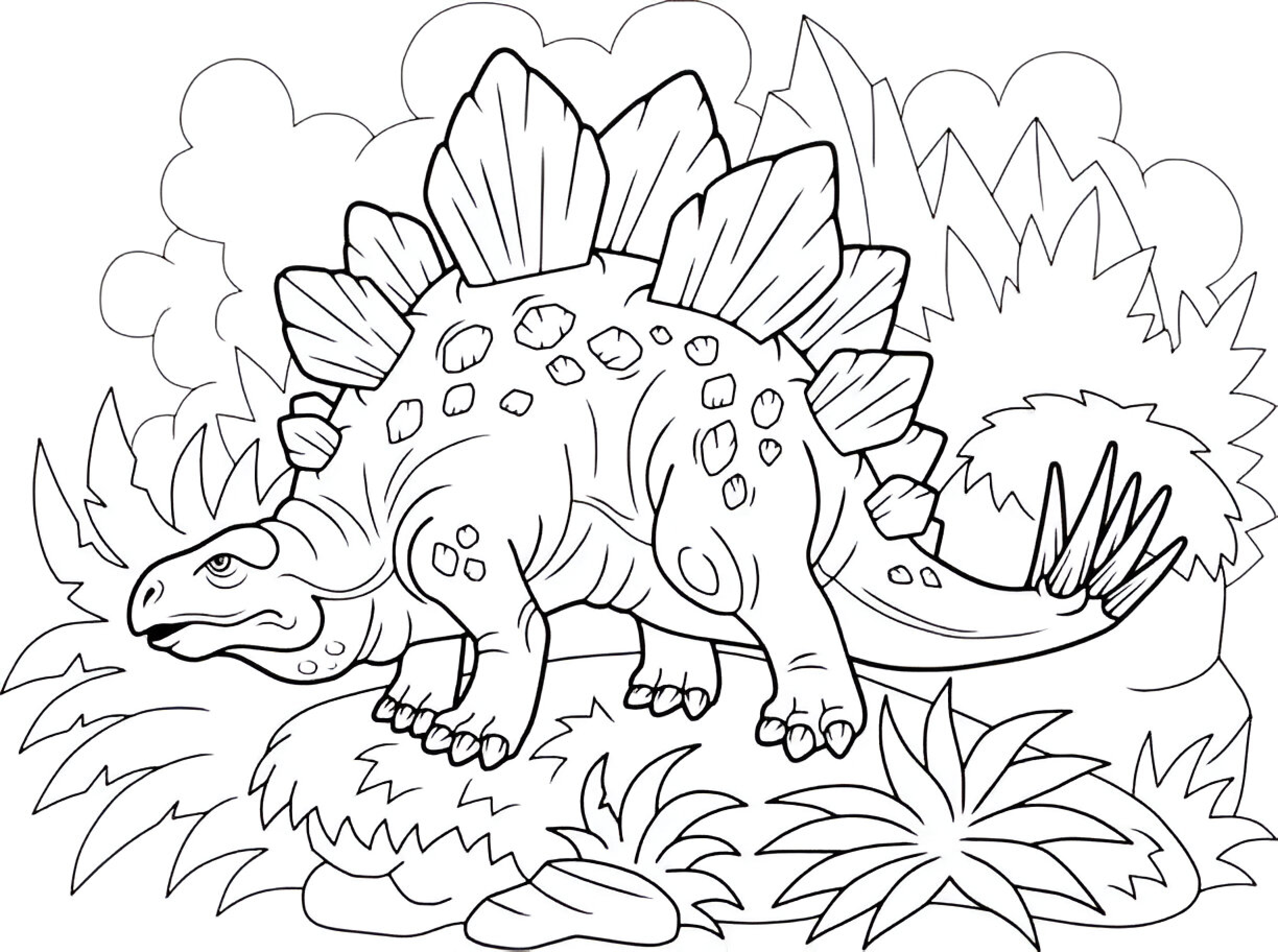 Este stegosaurus prehistórico está listo para ser coloreado por los más pequeños. Con su gran espalda llena de placas, es perfecto para enseñar a los niños sobre los dinosaurios mientras se divierten pintando.