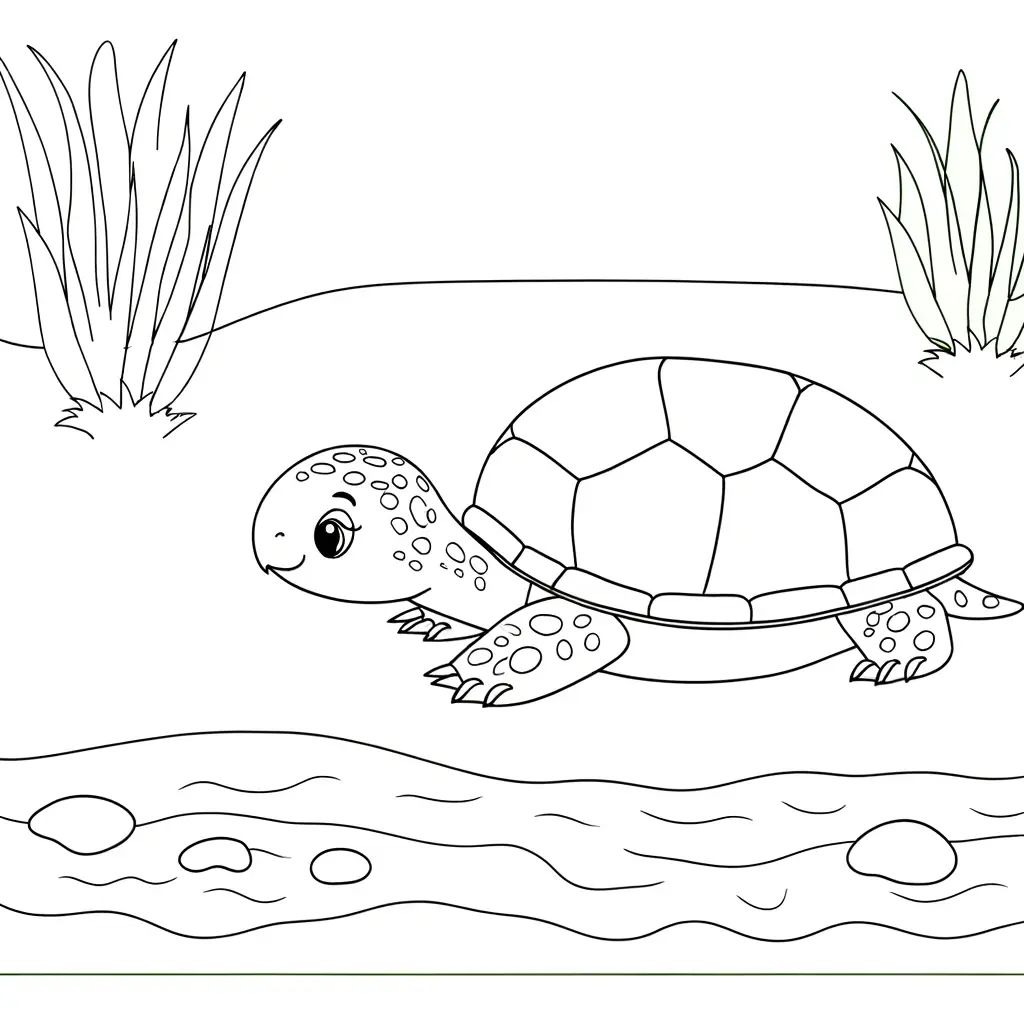Diviértete coloreando esta tortuga en un estanque, ideal para actividades educativas para niños.