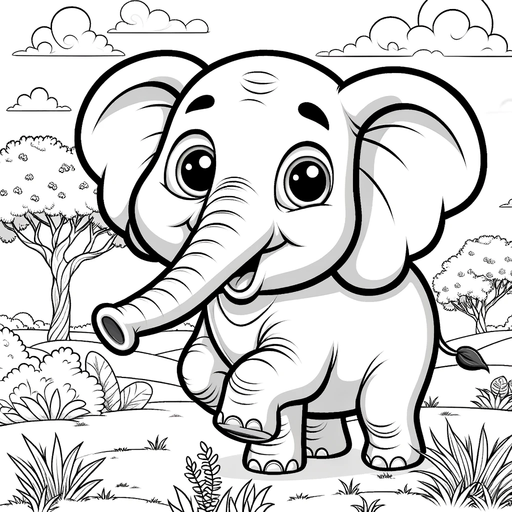 Descubre esta adorable caricatura de elefante para colorear. Perfecta para los más pequeños, esta imagen captura la esencia juguetona de los elefantes de una manera fácil y divertida de colorear.