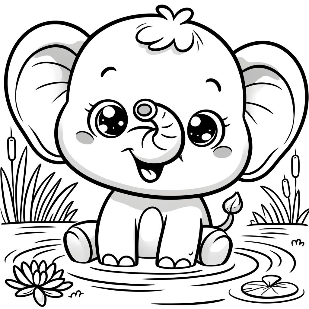 Explora la tranquilidad de un elefante en un estanque con esta imagen para colorear. Perfecta para imprimir y disfrutar con los niños, captura un momento sereno en la vida de estos majestuosos animales.