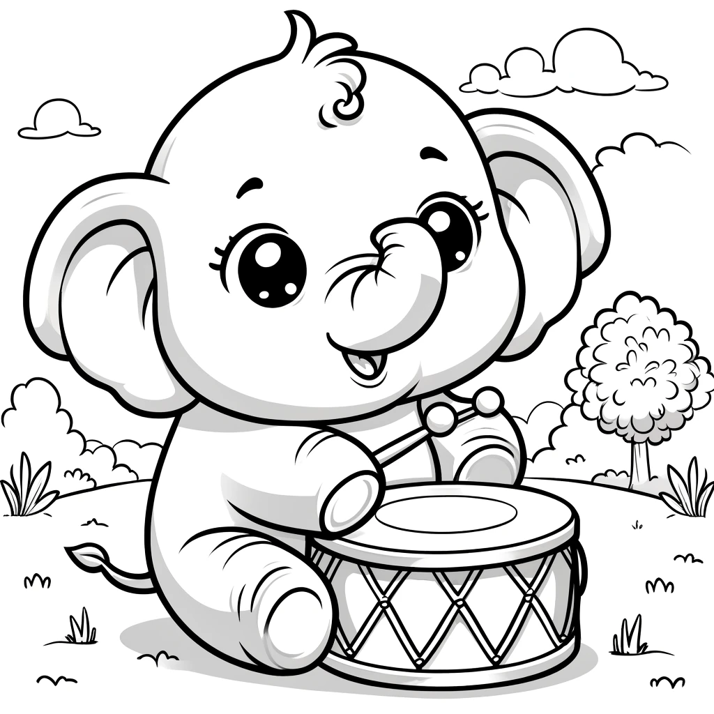 Este elefante tocando el tambor es perfecto para colorear e imprimir. Captura la diversión y el ritmo en una imagen que es ideal para niños de todas las edades.