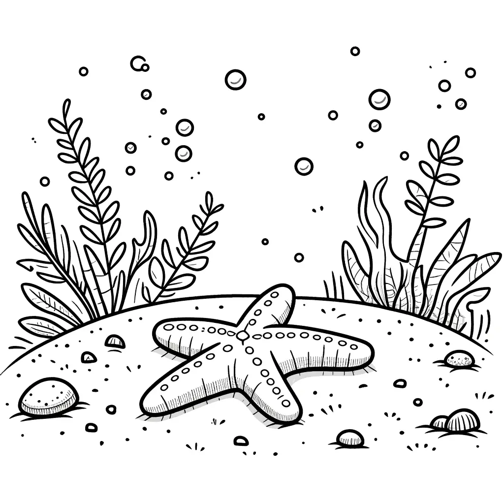 Disfruta coloreando esta hermosa estrella de mar en un fondo oceánico. Perfecto para relajarse y aprender sobre la vida marina. ¡Gratis para todos!