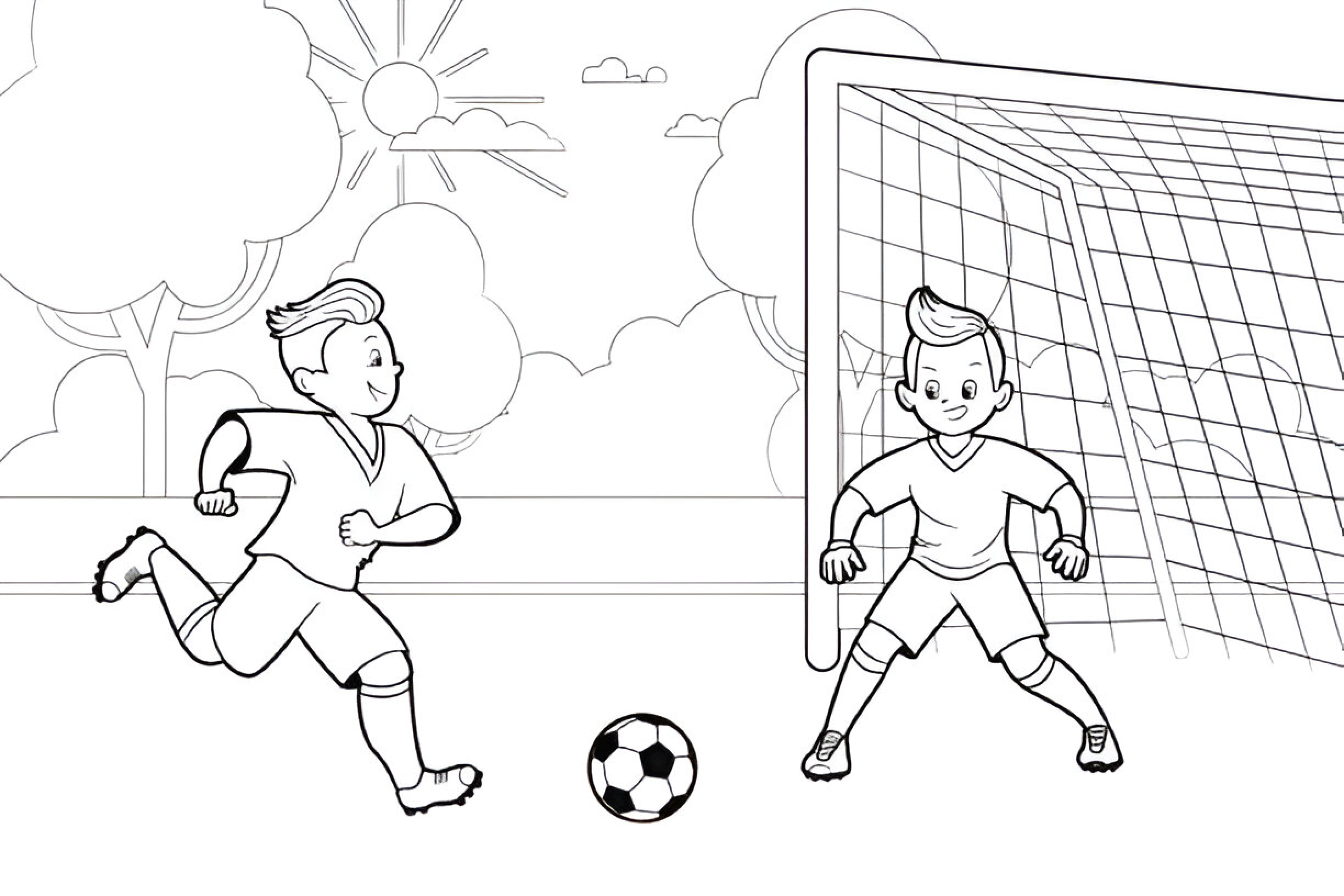 El sol brilla y los niños están listos para un emocionante partido en el estadio. Este dibujo para colorear capta la diversión y el espíritu del fútbol infantil. Imprime y deja que los niños llenen de color este día de fútbol lleno de energía y alegría.