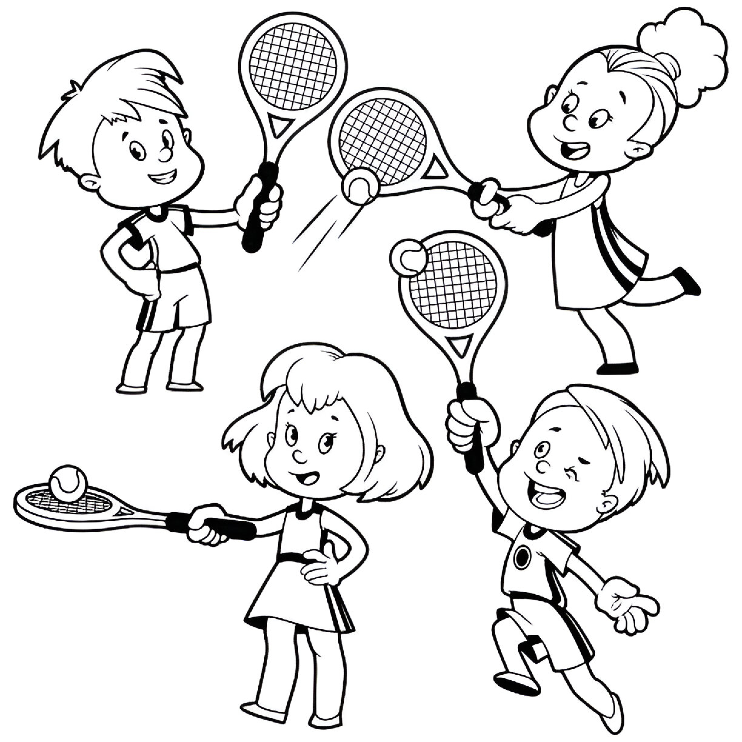 Este dibujo muestra a un grupo de niños disfrutando de un partido de tenis. Con líneas simples, es ideal para colorear y fomentar la colaboración entre los pequeños artistas. Es perfecto para aquellos que disfrutan de los deportes en equipo y quieren darle vida a la imagen con sus colores favoritos.