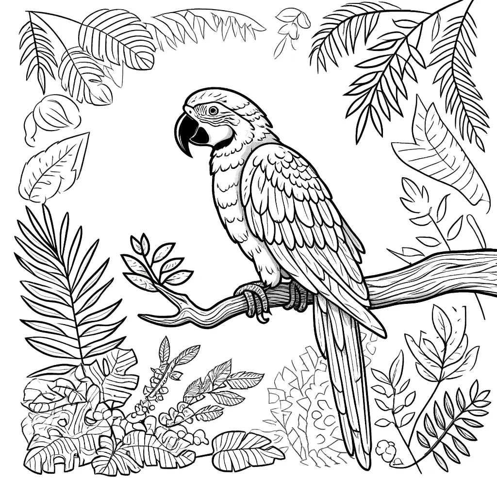 Colorea este guacamayo con sus vibrantes colores. Un dibujo detallado perfecto para aquellos que buscan un reto artístico.