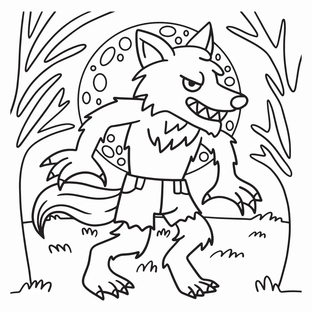 Colorea este hombre lobo listo para Halloween. Un dibujo divertido y perfecto para la temporada.