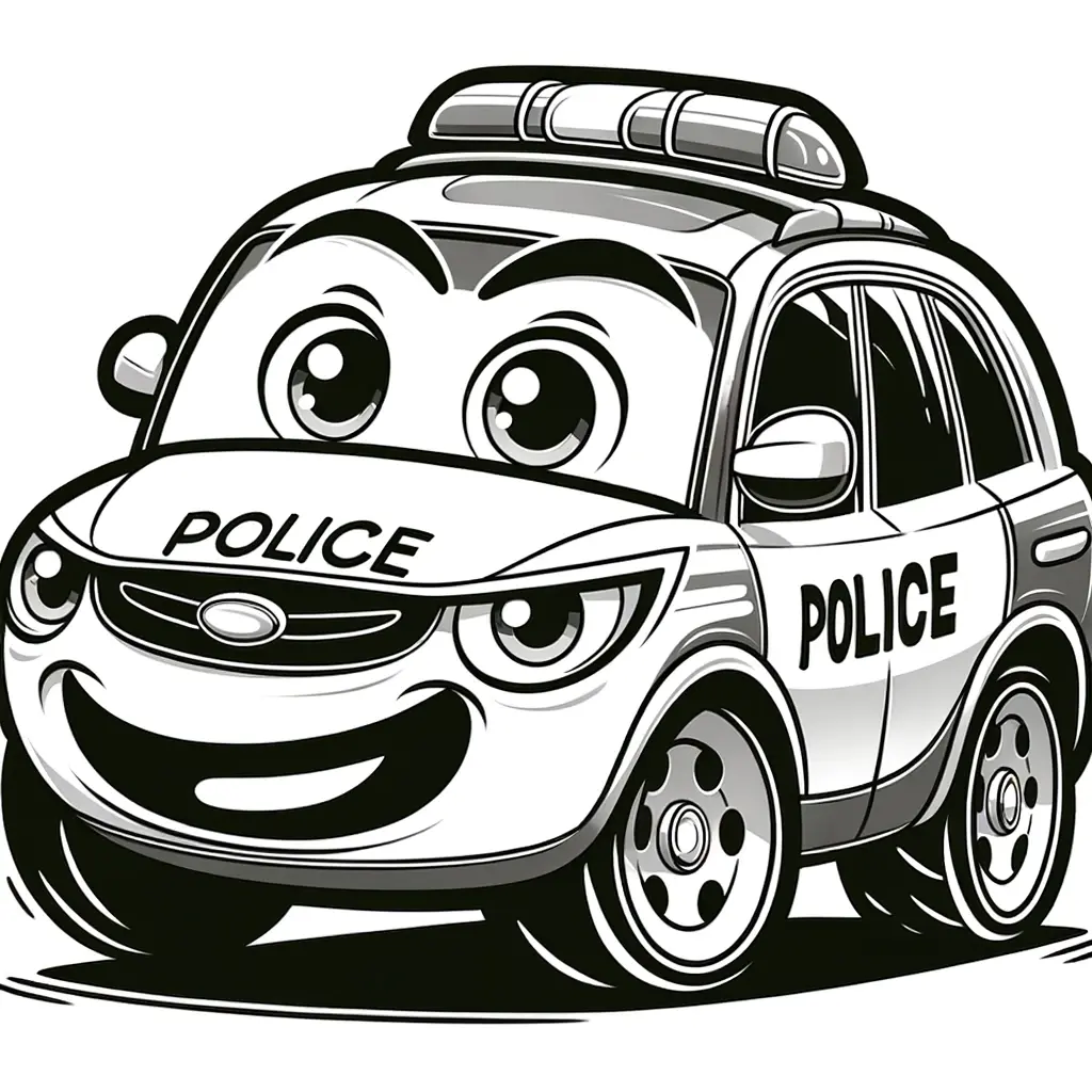Descubre la leyenda con este dibujo caricaturesco de un auto de policía. Perfecto para entusiastas de la acción y las historias de detectives.