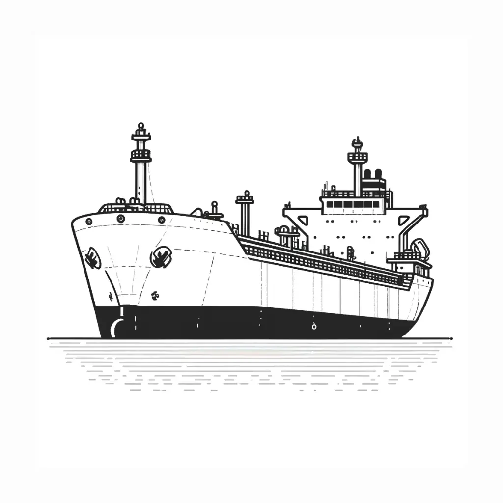 Sumérgete en la grandeza del mar con este dibujo de un barco grande listo para ser coloreado. Perfecto para aficionados a la navegación.