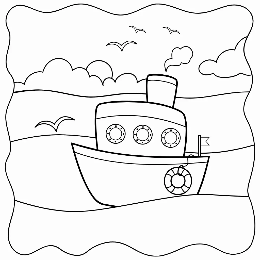 Diviértete coloreando este dibujo de un barco navegando entre el mar y las gaviotas. Perfecto para los más pequeños exploradores del mar.
