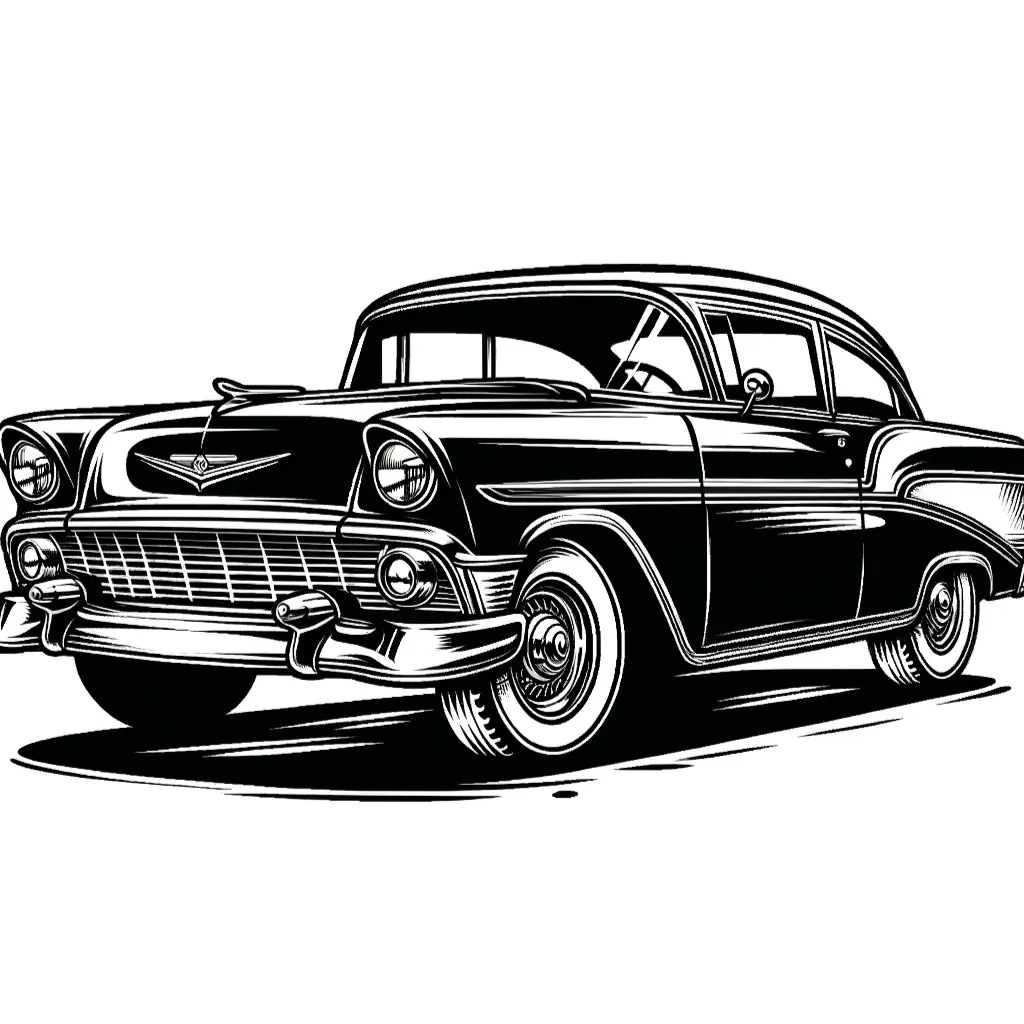 Revive la época dorada de los años 50 con este coche clásico. Un diseño retro perfecto para los amantes de lo vintage y del coloreado detallado.