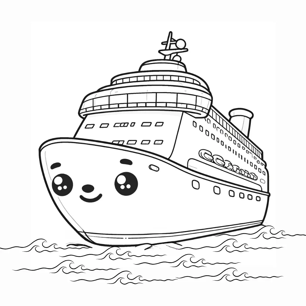 Crucero Sonriente para Colorear e Imprimir Fácil Niños