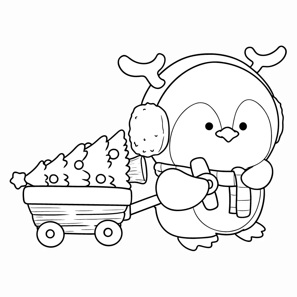 Colorea este divertido dibujo de un pingüino paseando junto a un árbol de Navidad. Perfecto para sentir la alegría navideña.