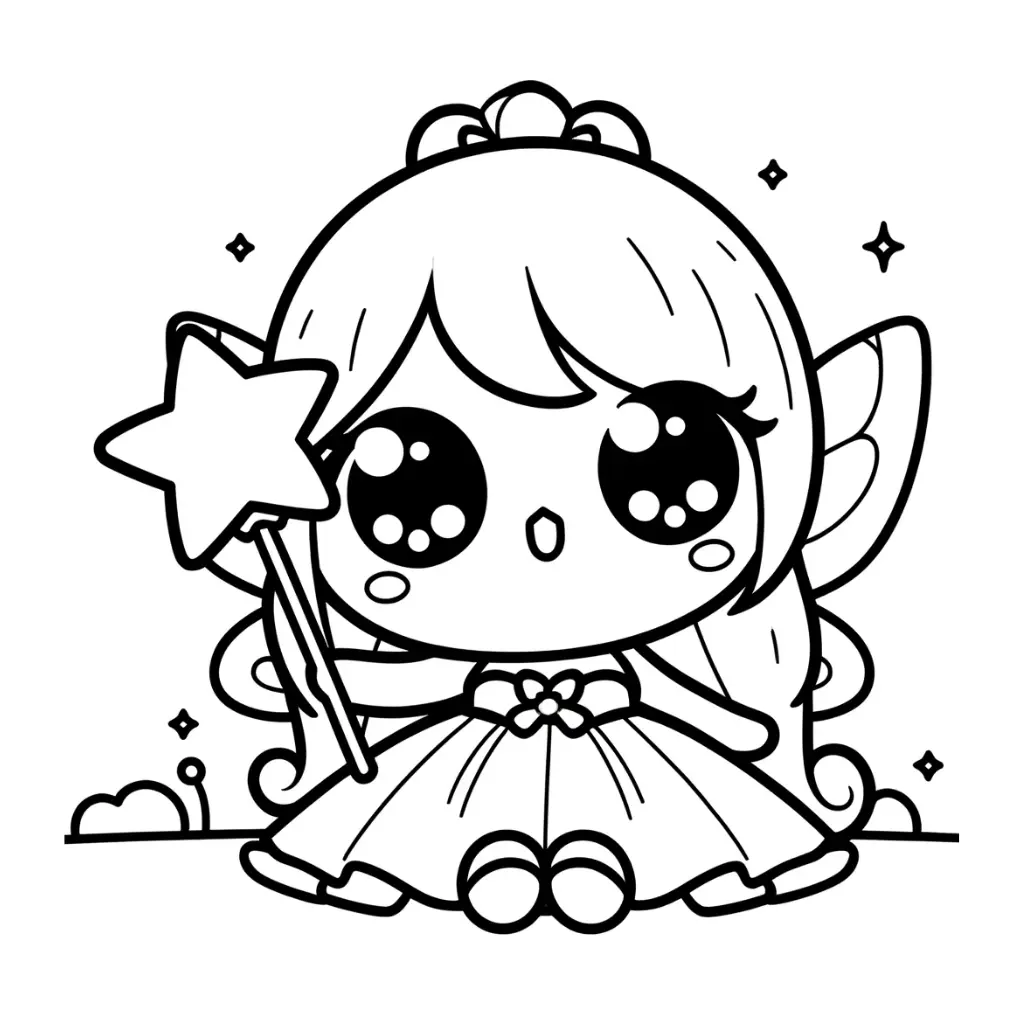 Colorea esta hada mágica en estilo kawaii y deja volar tu imaginación. Ideal para los amantes de los cuentos de hadas y la magia.