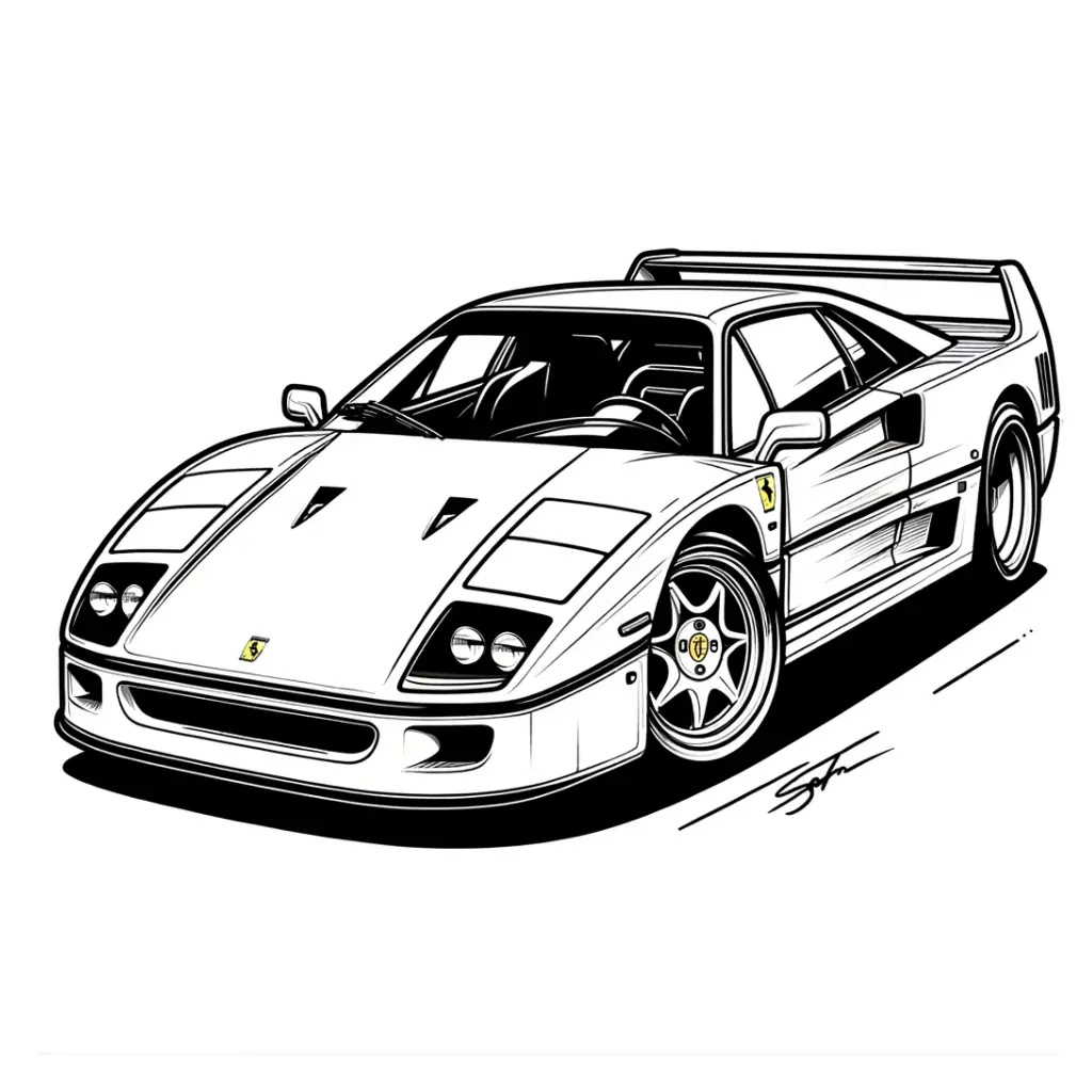 Colorea el legendario Ferrari F40 en su versión clásica. Ideal para entusiastas de los autos deportivos y la historia del automovilismo.