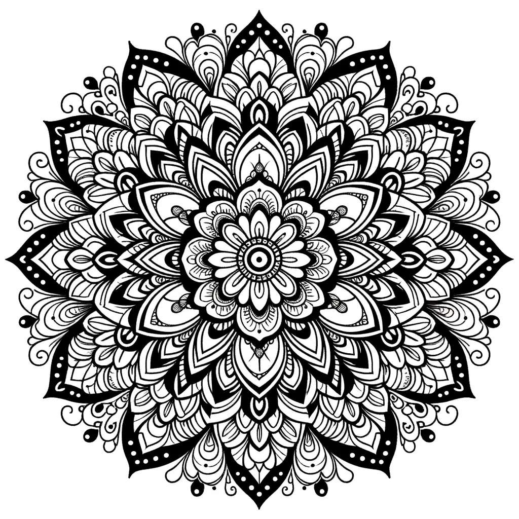 Disfruta del arte terapéutico con este mandala floral de patrones intricados. Ideal para adultos que buscan un desafío avanzado en el coloreo.