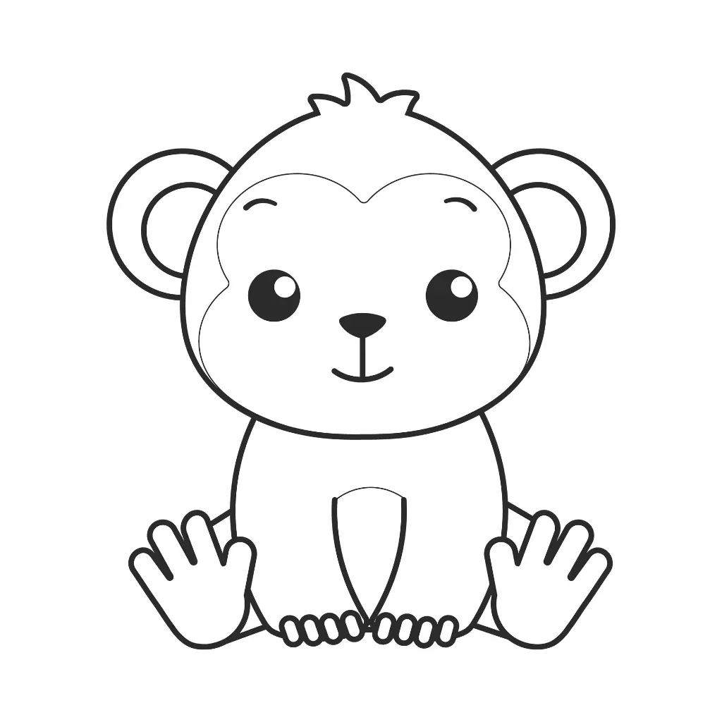 Colorea este simpático monito en estilo kawaii y disfruta de su alegría y curiosidad. Perfecto para los pequeños amantes de la naturaleza.