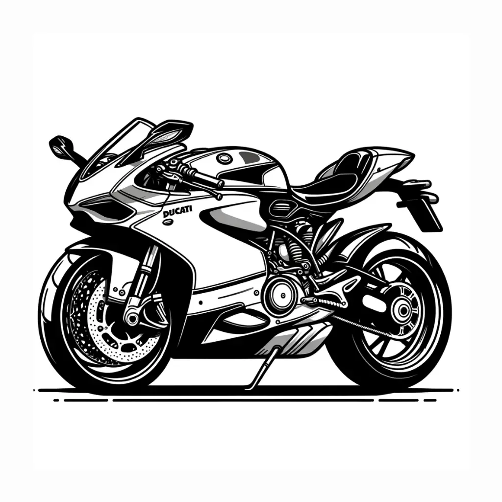 Colorea la icónica motocicleta Ducati en su versión deportiva. Ideal para aficionados de la velocidad y el diseño italiano.