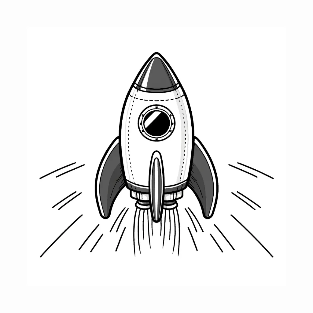 Diviértete coloreando este pequeño cohete despegando hacia nuevas aventuras. Perfecto para los más pequeños exploradores del espacio.