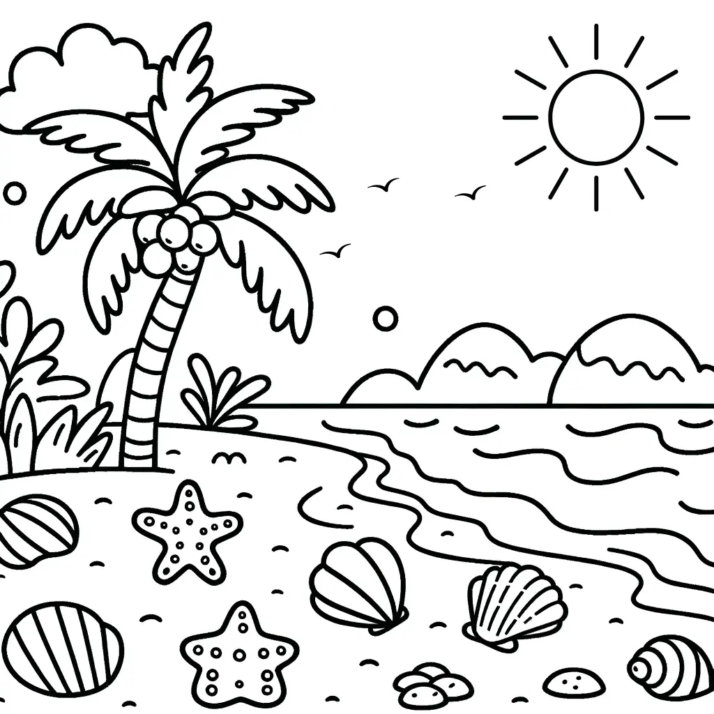 Imagina una escapada a una playa tropical con este dibujo para colorear fácil. Perfecto para introducir a los niños en el mundo del color y la naturaleza.