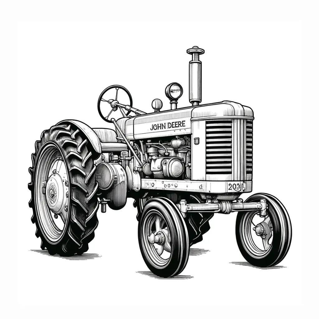 Colorea este icónico tractor John Deere en su diseño clásico. Perfecto para aficionados de la marca y entusiastas de la agricultura.